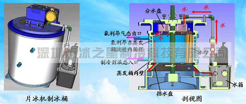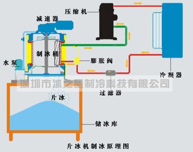 深圳市冰之星制冷科技有限公司來跟大家一起來分享了解片冰機制冰的一般原理,片冰機制冰原理、片冰機制冷原理、片冰機制冰桶結構原理及如下圖所示: