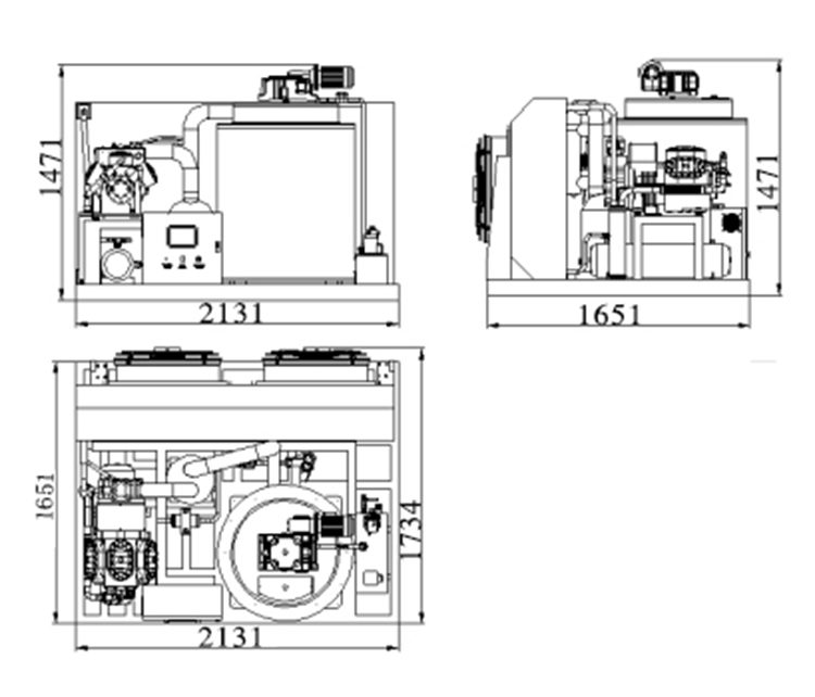 片冰機附帶配置: 1、儲冰庫1個;(選配,可按客戶要求) 2、工程塑料冰鏟1把; 3、進水管1根; 4、鹽水