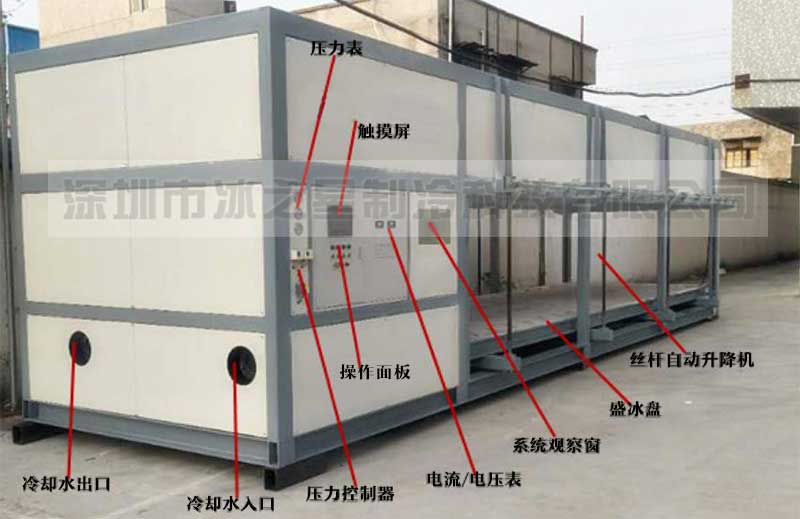 1、單套機器制冰產量3噸~30噸一體機設計,拉到現場接水接電即可開機制冰;