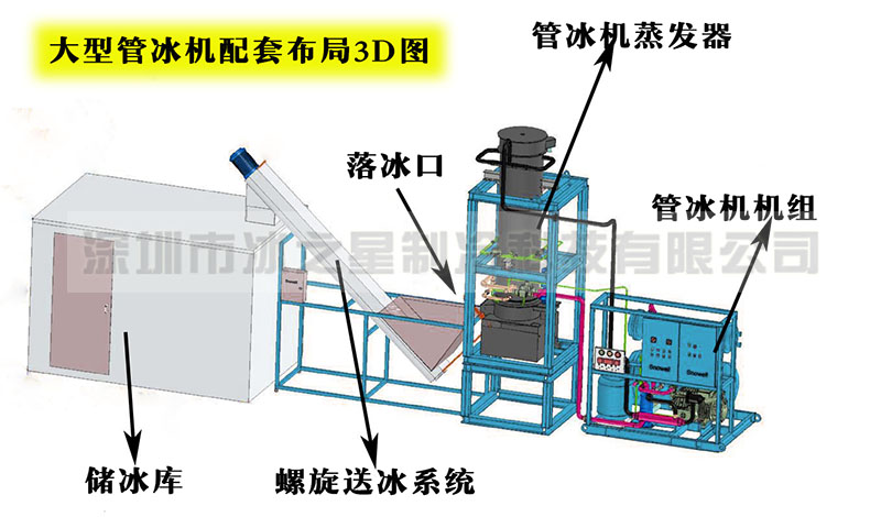 深圳冰之星20噸食用管冰機簡介: 管冰機為制冰機 的一種。因其冰塊形狀為中空管狀而得名,其內孔徑在5m